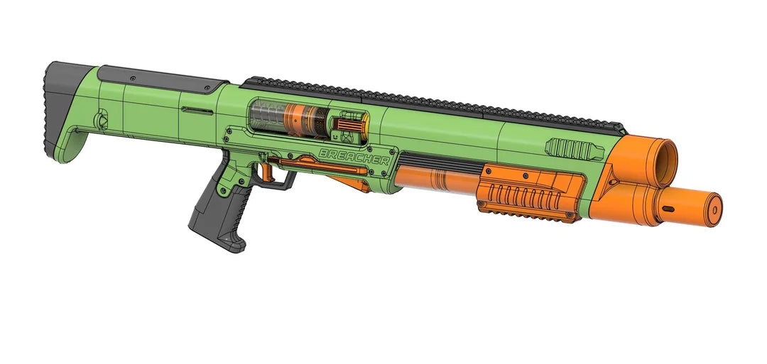 The SillyButts Breacher Printed Parts + Assembly Kit includes all 3D-printed components and hardware needed to build your own tube-fed, silly shell Nerf shotgun. Perfect for makers and modders, this kit is designed for those who don’t want to handle printing their own parts but still want the flexibility to assemble it themselves, if they choose.